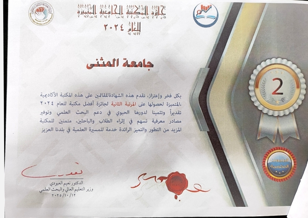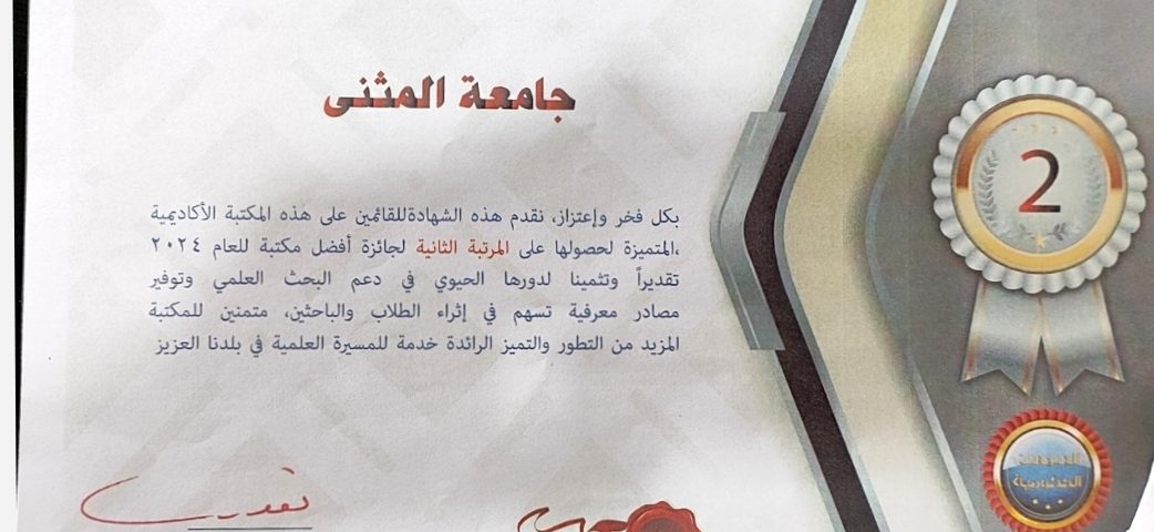 30 نوفمبر، 20253 ديسمبر، 2025 Published by baneen kader on 1 ديسمبر، 2025 Categories اخبار Tags انجاز اكاديمي متميز . نالت المكتبة المركزية شهادة تقديرية من السيد الوزير لحصولها على . المركز الثاني ضمن افضل المكتبات الاكاديمية لعام ٢٠٢٤. Share0 baneen kader Related posts4 ديسمبر، 2025Read more3 ديسمبر، 2025Read more3 ديسمبر، 2025Read more اترك تعليقاً إلغاء الردلن يتم نشر عنوان بريدك الإلكتروني. الحقول الإلزامية مشار إليها بـ *التعليق * الاسم * البريد الإلكتروني * الموقع الإلكتروني احفظ اسمي، بريدي الإلكتروني، والموقع الإلكتروني في هذا المتصفح لاستخدامها المرة المقبلة في تعليقي.